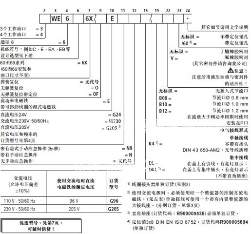 6通徑單頭電磁換向閥4WE6D(機(jī)能C,Y,EA,EB,HB )6X/EG24N9K4